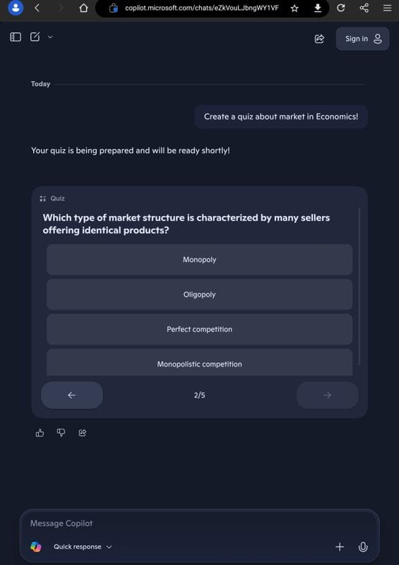 Chris Hoffman berpendapat chatGPT punya masa depan yang lebih cerah dibandingkan Copilot, walaupun Copilot dibangun bersama chatGPT dengan dana yang sangat besar. Argumennya meyakinkan. Tetapi untuk kemampuan Quiz, kemampuan Copilot tidaklah bisa dianggap enteng. Terutama ketika kita memaksa ia mengeluarkan versi terbaiknya. Format quiznya juga lebih serius, jawaban/kunci disembunyikan dulu, tidak langsung dibagikan.
