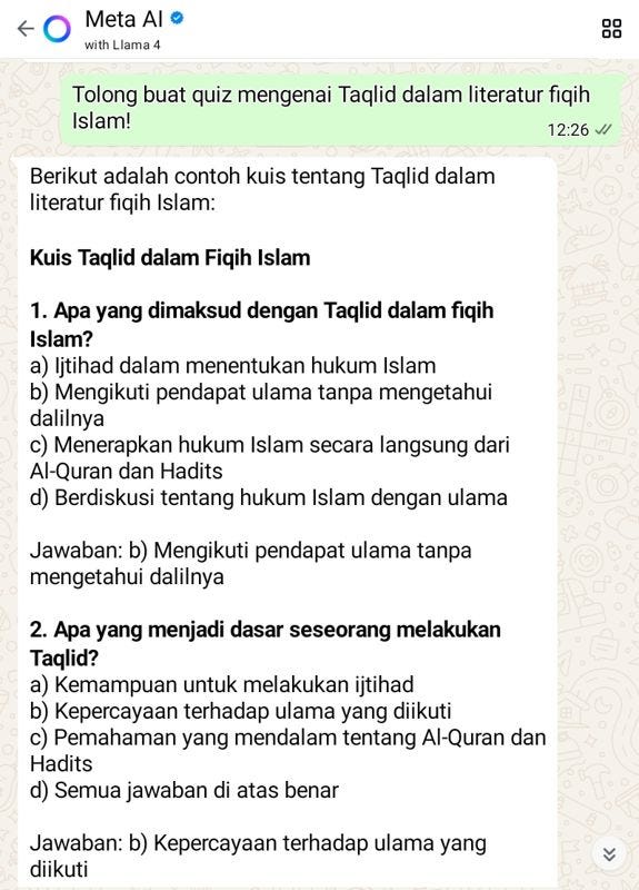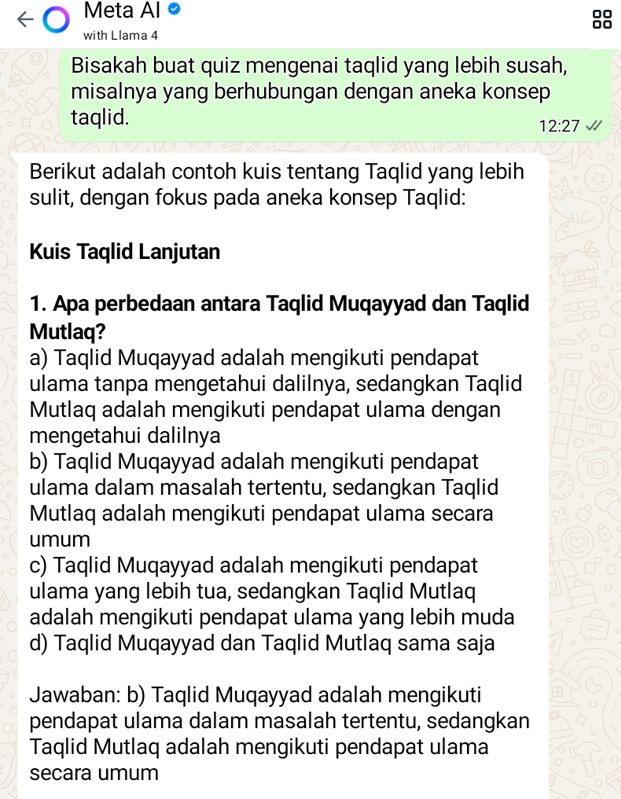Bagaimana dengan kemampuan Quiz dari AI Meta berbasis Llama yang siap sedia di WhatsApp?